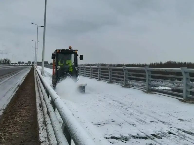 26日0点0时,抚顺项目在风雪寒夜中启动抗冰除雪“零点行动”,近700人严阵以待,73台除雪车辆整装待发,以雪为令、闻雪而动,主干道大型除雪车火力全开,快速清除路面积雪;辅道和狭窄路段运用小型手扶式扫雪机高效清理,连续奋战15小时,疏通道路140公里,清除积雪1500余吨,保障道路畅通无阻。